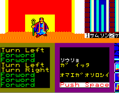 それにしても、序盤に何度も剣士と間違って戦ってしまったかわかりません。なんで剣士と出会った時にスペースキーを押すと「戦う」になってしまうのか。それまでずっとモンスターとエンカウントして、スペースキーで「戦う」を選択したのに、人間の世界に戻ってきたら「話す」を選択してからスペースキーを押さないといけないなんて、いくらなんでもヒドすぎます。あやうくキーボードクラッシャーになる所でした。