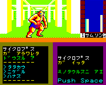 これでパーティは [サムソン、スケルトン、ミノタウルス]の3人になります。この後でパッケージやタイトル画面のイラストを見ると「ああ、なるほど」と思うでしょう。
