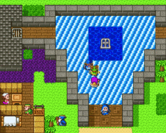 武器屋の裏手にある旅の泉に入りると、「銀の鍵をみつけなされ」と言われます。その情報はもう古いの!(©アーサーカミングスJr.)