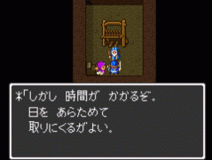 ここでいう時間とは、ゲーム内の時間ではありません。したがって、ドラクエ4の気球みたいに、宿屋に泊まったらできるというものではありません。じゃあどうするのかというと、いったんセーブしてロードしなければなりません。エミュレーターのどこでもセーブだと、ゲーム内でセーブされたと認識されないのでダメです。必ず、ゲーム内でセーブしてください。