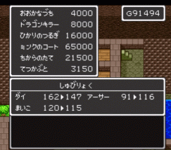 力の盾を買います。アーサーの防御力がアップするだけでなく、戦闘中に道具として使用すると、持っている人の体力が回復します。ただし、戦闘中限定で、持ってる人限定です。