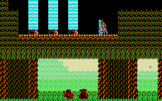 さっきの女神像の所に入れっぱなしにしてしまった、という方は、さっきセーブしたデーターをロードしてやり直しましょう。え?セーブを忘れた?それじゃリセットしてペンタウァからやり直しって事で。ああ、でも、ここでFLYの魔法を持っていれば上に上がれるかもしれませんね。