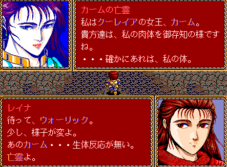 女王カームの亡霊が現れます。今現在カームと名乗っているのは、魔物がカームの肉体に憑依したものだそうです。