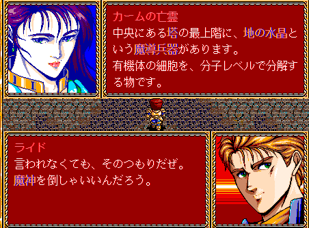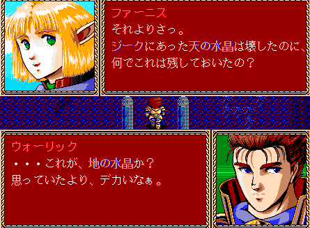 中央の塔の最上階に地の水晶があるそうです。序盤にセルーシュ城から盗まれた奴ですな。その正体は、有機物を分子レベルで分解してしまう兵器なんだそうです。