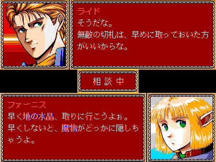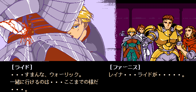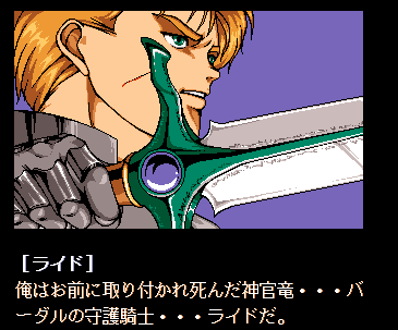 つか、守護騎士なら鎧着てこいよまったく。ライドが死んで何度ゲームオーバーになった事やら・・・。ああ、なるほど、序盤からライドだけは売ってる武器はどれも「性に合わん」とか言って使わなかったのはそのためか。守護騎士である事を隠すために鎧は着てないけど、剣だけは正当な守護騎士の剣だったわけですな。
