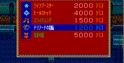 商店クーレイ屋。朱雀の鎧は今全員が持ってる防具より弱いので必要ありません。ドリアードの指輪もほとんど役に立たないので買わなくて良いでしょう。(ファーニスしか使えないし)