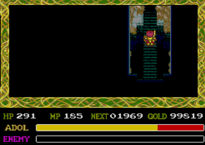 単純作業をさせられるシーンが多いのも気になります。イース1などは後半からは経験値稼ぎが不要で純粋なアクションゲームになったんですけど、このイース4では中ボス戦の度に経験値稼ぎとして2000~3000の経験値稼ぎを2回(2レベルアップ)やらされます。もう、途中からは、「これはストーリーの続きを見るためには単純作業をやらされるゲームだ」と割り切ってプレイしました。