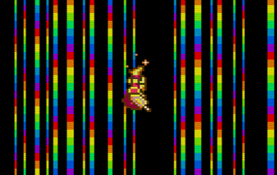 ただし、左上に安全地帯がある上に、時間制限もないので地道にやっていればクリアできます。しかし、「ダルマさんが転んだ」じゃないけど、敵は時々フェイントかけてビームを速く動かしたり、右から左にゆっくり動かしたかと思えば突然左に速く動かしたりするので、どこでもセーブなしでクリアするのは不可能かと。
